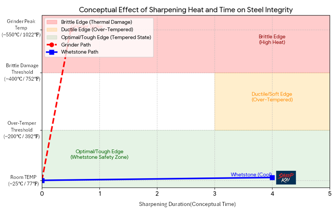 - Cool and Controlled Abrasion: Waterstones operate with constant lubrication and cooling. This eliminates the risk of significant heat buildup, protecting the steel's temper and preventing the destructive phase changes.